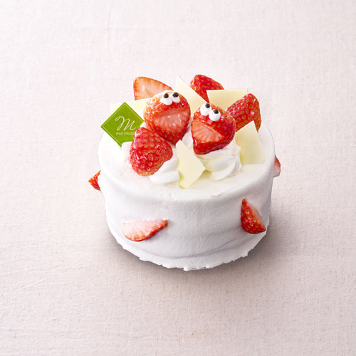 苺サンドのケーキに、かわいらしい顔つき苺を飾りました。