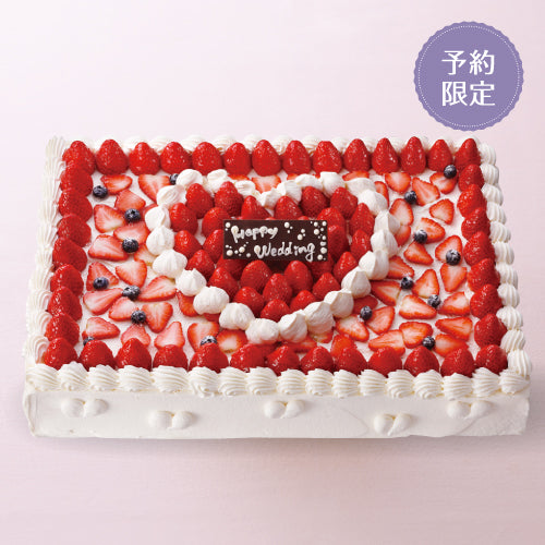 ウエディングなどのお祝いにぴったりな四角いデコレーションケーキ。