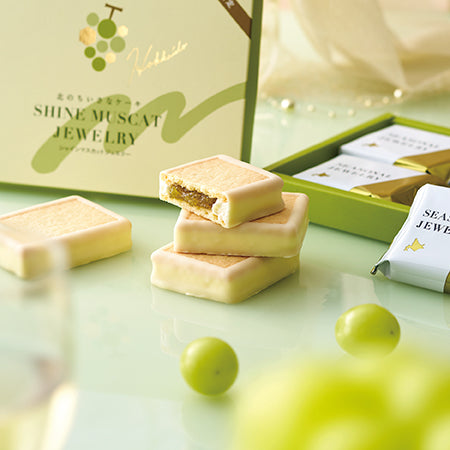 まろやかでミルキーなホワイトチョコレートとの組み合わせは、シャインマスカットの味わいを引き立て、口の中で優雅な余韻が広がります。